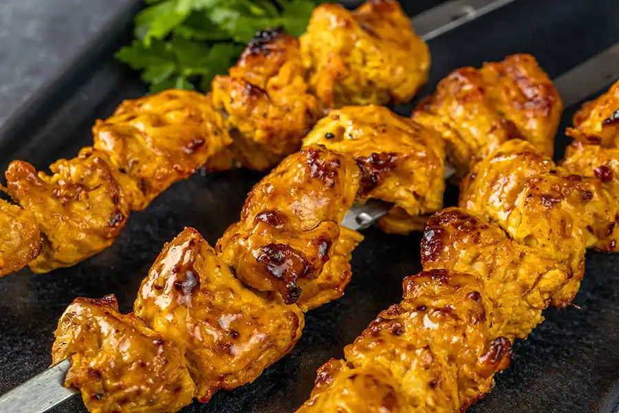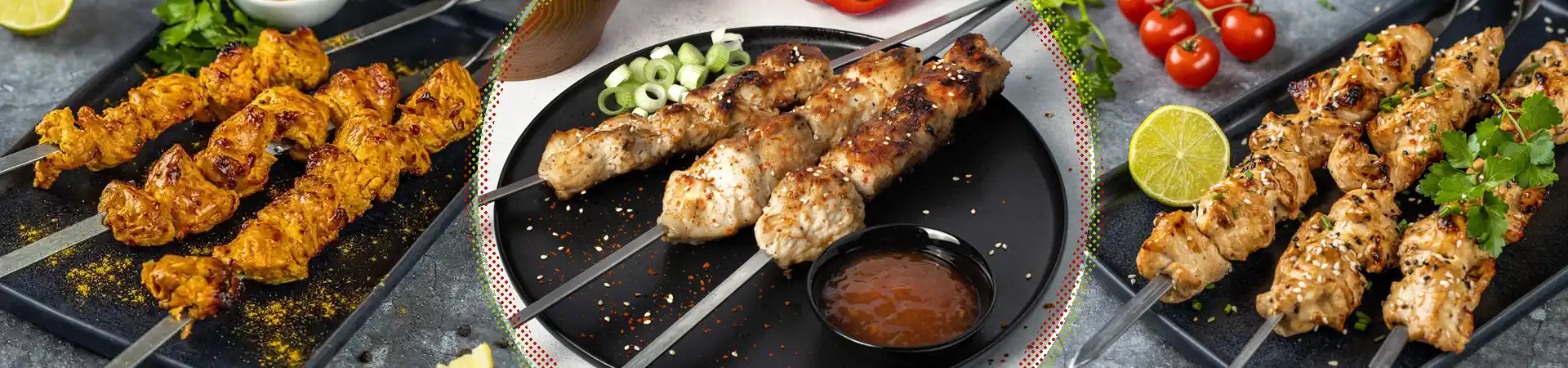 Poulet Süss-Sauer Schaschlik - Lassen Sie sich von unserem Poulet Süss-Sauer Schaschlik verzaubern, das die beliebten Aromen der chinesischen Küche aufgreift. Saftiges Poulet wird in einer süss-sauren Sauce mariniert, die durch die perfekte Balance von Zucker und Essig eine aufregende Geschmackskombination bietet. Die fruchtige Note der Marinade, oft mit Ananas und Paprika verfeinert, macht dieses Schaschlik zu einem Favoriten für alle Liebhaber der asiatischen Küche.